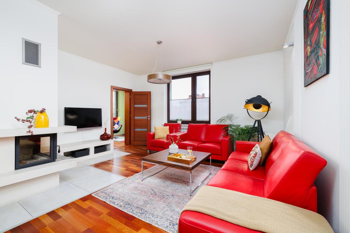 Dom z 4 sypialniami. This holiday home offers a fireplace. Guests will find a stovetop, a refrigerator, a dishwasher and an oven in the kitchen. The holiday home also provides guests with a barbecue. The spacious air-conditioned holiday home provides a flat-screen TV, a washing machine, a private entrance, soundproof walls as well as garden views. The unit offers 9 beds. Dom wakacyjny - 11 osobowy. Powierzchnia pokoju ok.: 180 mkw.